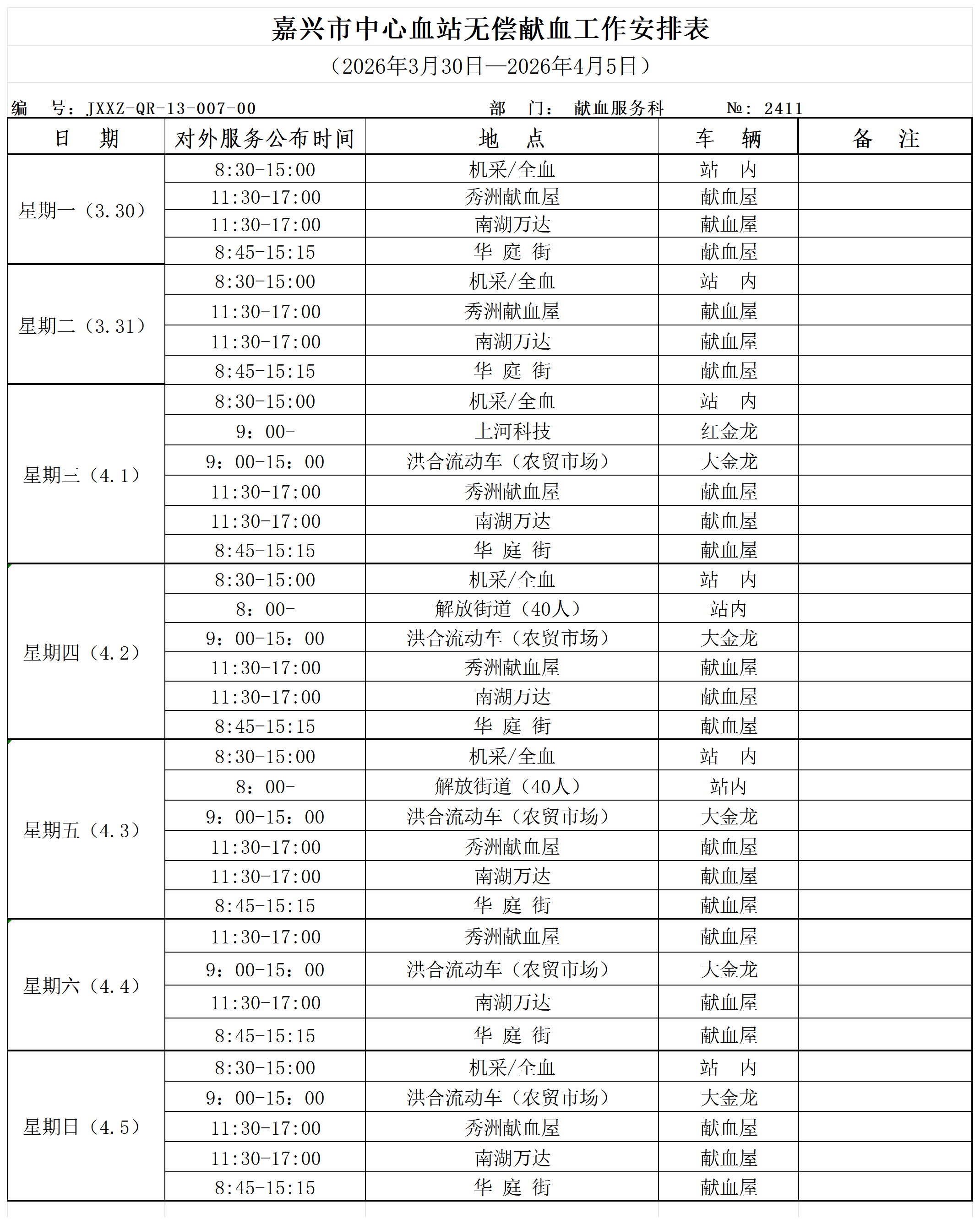 一周工作安排(2026年3月30日—2026年4月5日)