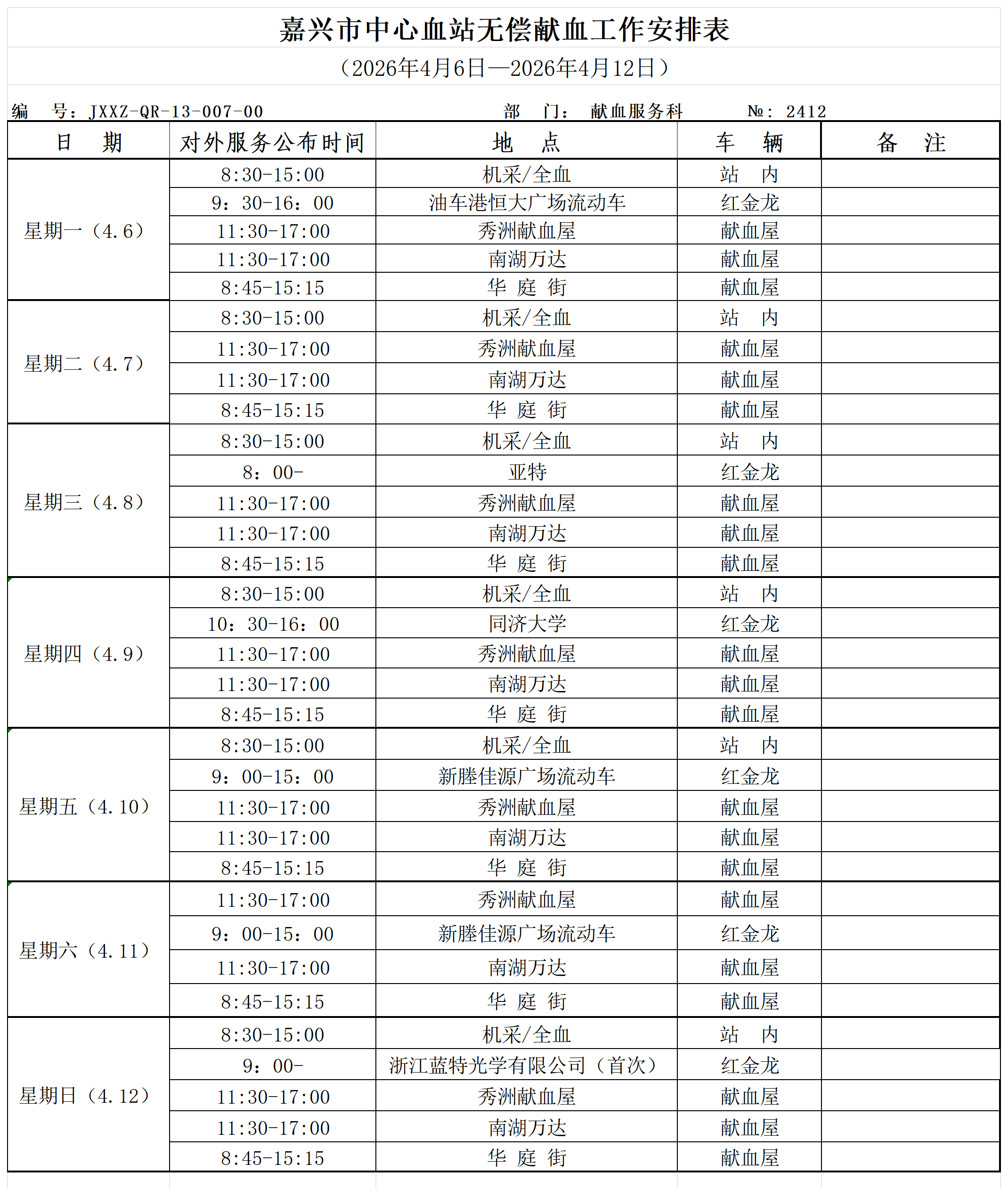 一周工作安排(2026年4月6日—2026年4月12日)